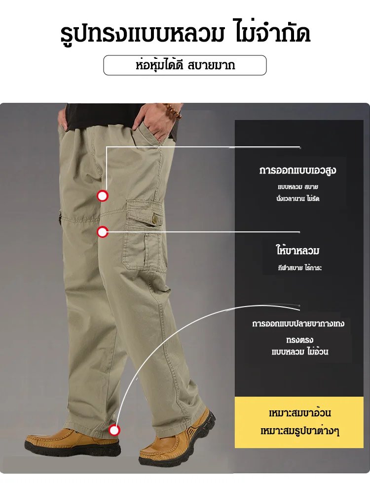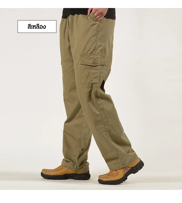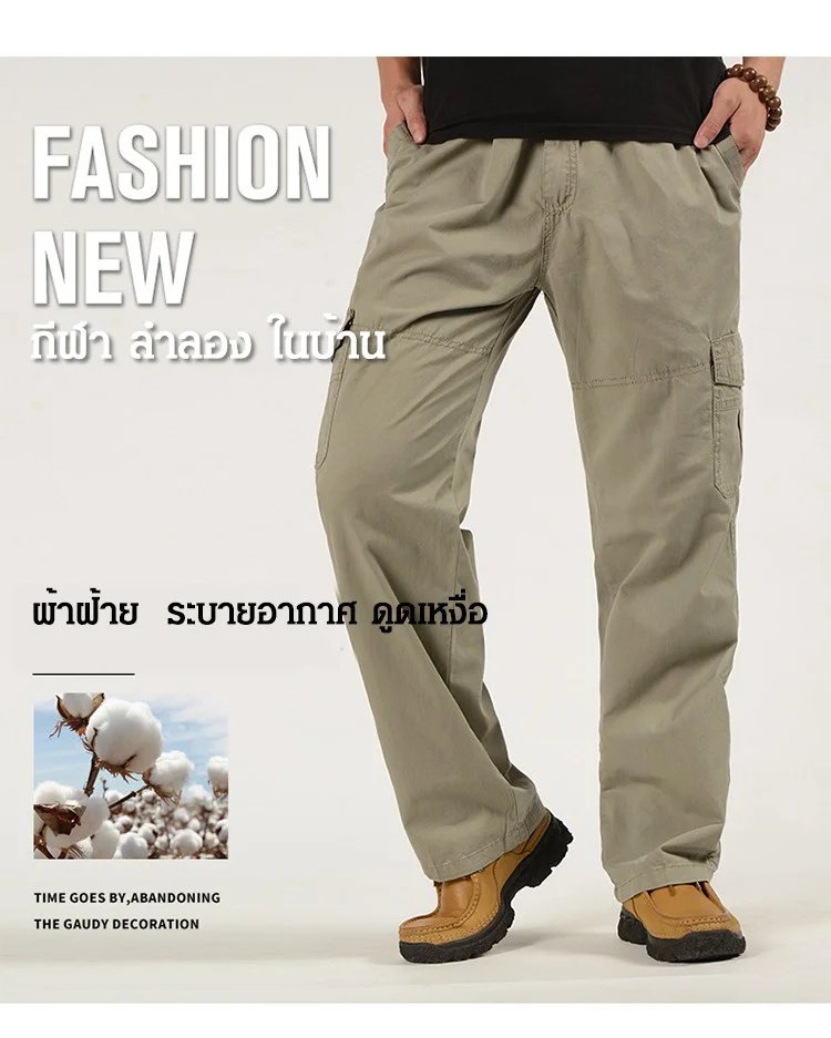 กางเกงขายาวทรงกระบอกลำลองผู้ชายผ้าฝ้ายแท้ ผ้าฝ้าย 100% ระบายอากาศ ซับเหงื่อ เอวยางยืด กันขีดข่วน ทนสึกหรอ มี 4 สีให้เลือก ภายใน 130 กก.ใส่ได้ ไม่เลือกอายุ ไม่เลือกหุ่น ใส่แล้วดูอ่อนกว่าวัย